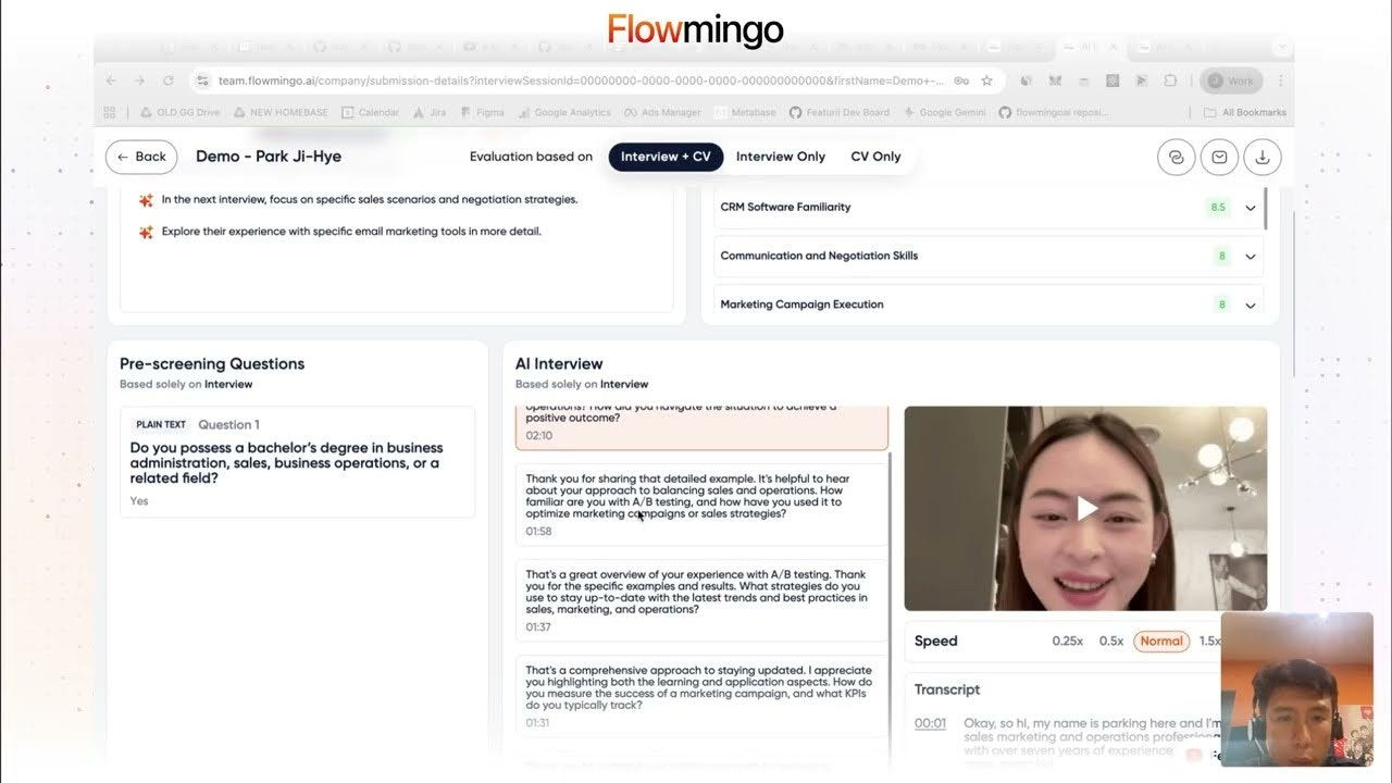 Flowmingo é uma plataforma de inteligência artificial que realiza entrevistas personalizadas, otimizando o processo de recrutamento ao identificar talentos rapidamente e com eficiência, economizando tempo dos recrutadores.