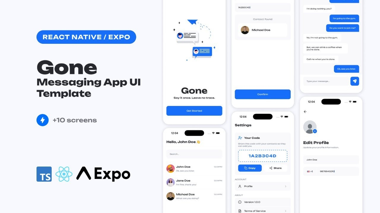 Descrição da ferramenta: Gone é um modelo de interface para aplicativos móveis de mensagens, focado em privacidade e segurança, desenvolvido com React Native e Expo, facilitando o lançamento rápido de plataformas de comunicação seguras e efêmeras.