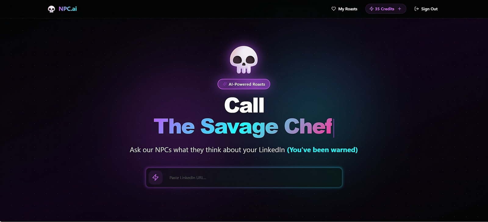 Descrição da ferramenta: NPC.ai é uma plataforma que utiliza inteligência artificial para avaliar de forma crítica e direta o perfil profissional do LinkedIn, oferecendo feedbacks sinceros sobre a presença online e a marca pessoal do usuário.