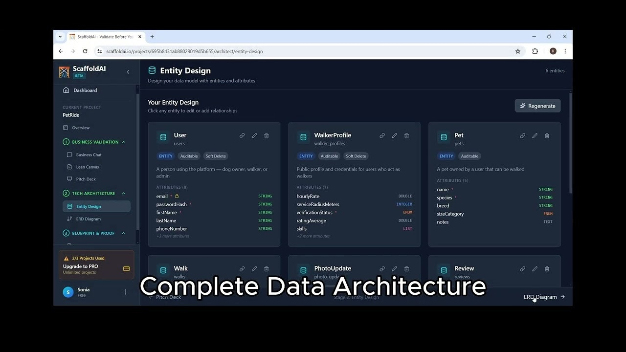 Descrição da ferramenta: ScaffoldAI é uma plataforma que transforma ideias de aplicativos em arquiteturas testáveis rapidamente, integrando inteligência artificial para gerar entidades, editar visualmente e criar APIs funcionais, otimizando o processo de desenvolvimento.