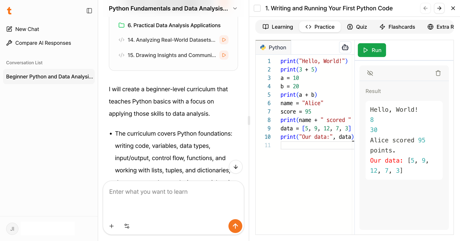 Descrição da ferramenta: TutorCampus é uma plataforma de aprendizado com inteligência artificial que oferece aulas interativas, questionários, execução de código em tempo real e comparação de respostas entre múltiplos modelos de IA, promovendo uma experiência educacional estruturada e eficiente.