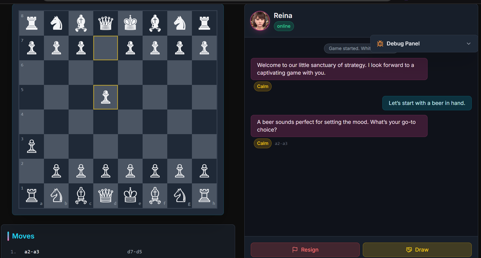 Descrição da ferramenta: Velvet-Board é um jogo de xadrez conversacional onde personagens com personalidades distintas reagem a cada movimento, criando uma experiência carregada de tensão psicológica e interação dinâmica.