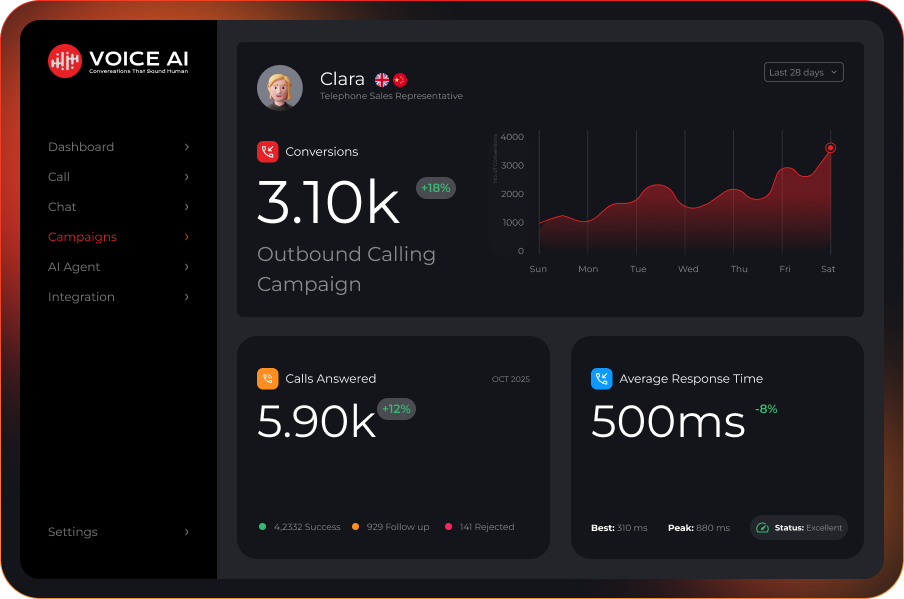📈 Análise de chamadas: Avalia interações para melhorar a qualidade do atendimento e treinar agentes humanos.