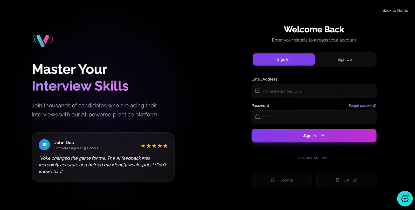 Descrição da ferramenta: Voke é uma plataforma de aceleração de carreira alimentada por inteligência artificial, que prepara engenheiros para entrevistas técnicas por meio de simulações realistas, análises em tempo real e sessões de prática com colegas, promovendo um ambiente gamificado para conquistar o emprego desejado.