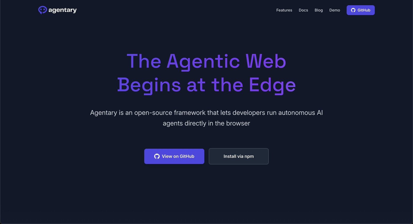 Descrição da ferramenta: Agentary é um SDK de código aberto em JavaScript que permite executar agentes de inteligência artificial diretamente no navegador, utilizando WebGPU para alto desempenho, promovendo experiências de IA rápidas, privadas e sem necessidade de servidores.