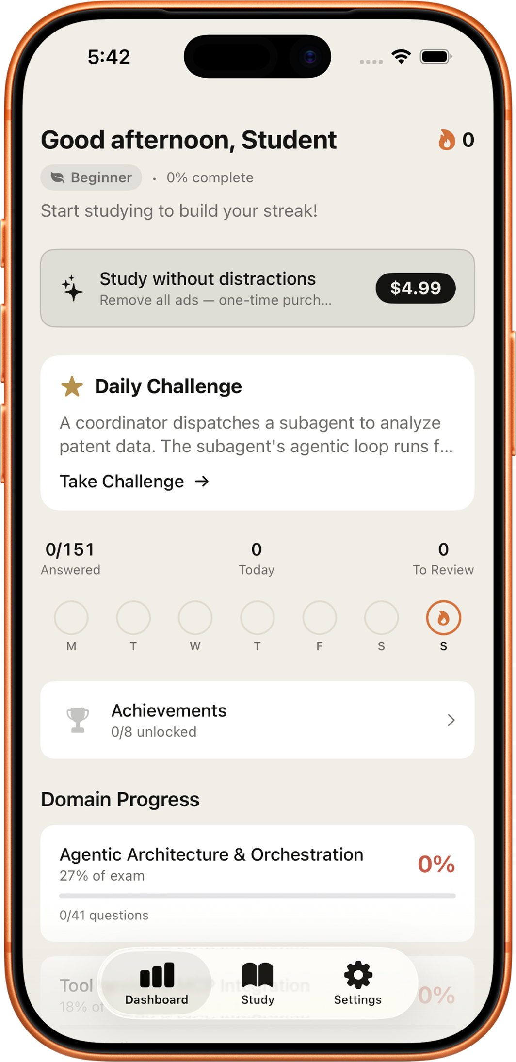 Descrição da ferramenta: Aplicativo de estudos dedicado à preparação para o exame de certificação Claude Certified Architect – Foundations, oferecendo questões baseadas em cenários reais, simulações de provas e recursos de repetição espaçada para otimizar o aprendizado.