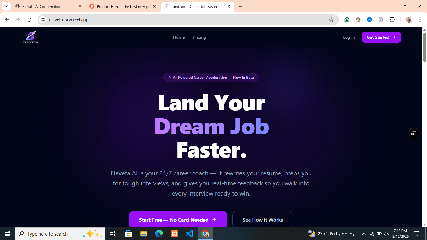 Descrição da ferramenta: Eleveta AI é uma plataforma de coaching de carreira alimentada por inteligência artificial, oferecendo currículos otimizados, cartas de apresentação personalizadas, simulações de entrevistas e feedback em tempo real para acelerar a conquista do emprego desejado.
