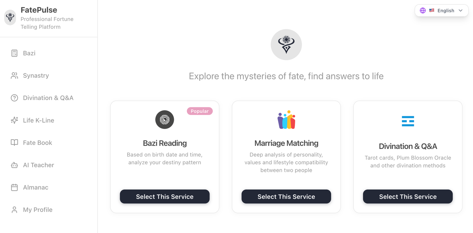 Descrição da ferramenta: FatePulse é uma plataforma que utiliza inteligência artificial para analisar e visualizar o destino baseado na astrologia chinesa Bazi, apresentando tendências de carreira, riqueza e relacionamentos por meio de gráficos intuitivos.