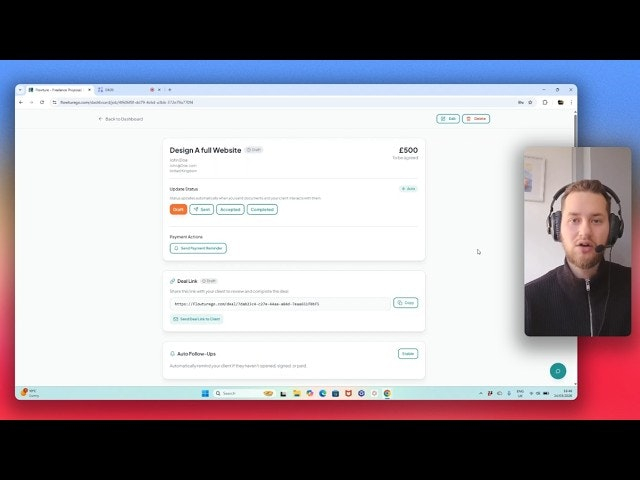 Descrição da ferramenta: Flowture é uma plataforma que permite freelancers criar propostas, contratos e faturas de forma rápida e integrada, facilitando a assinatura digital e o pagamento em um único link, otimizando o processo de fechamento de negócios.