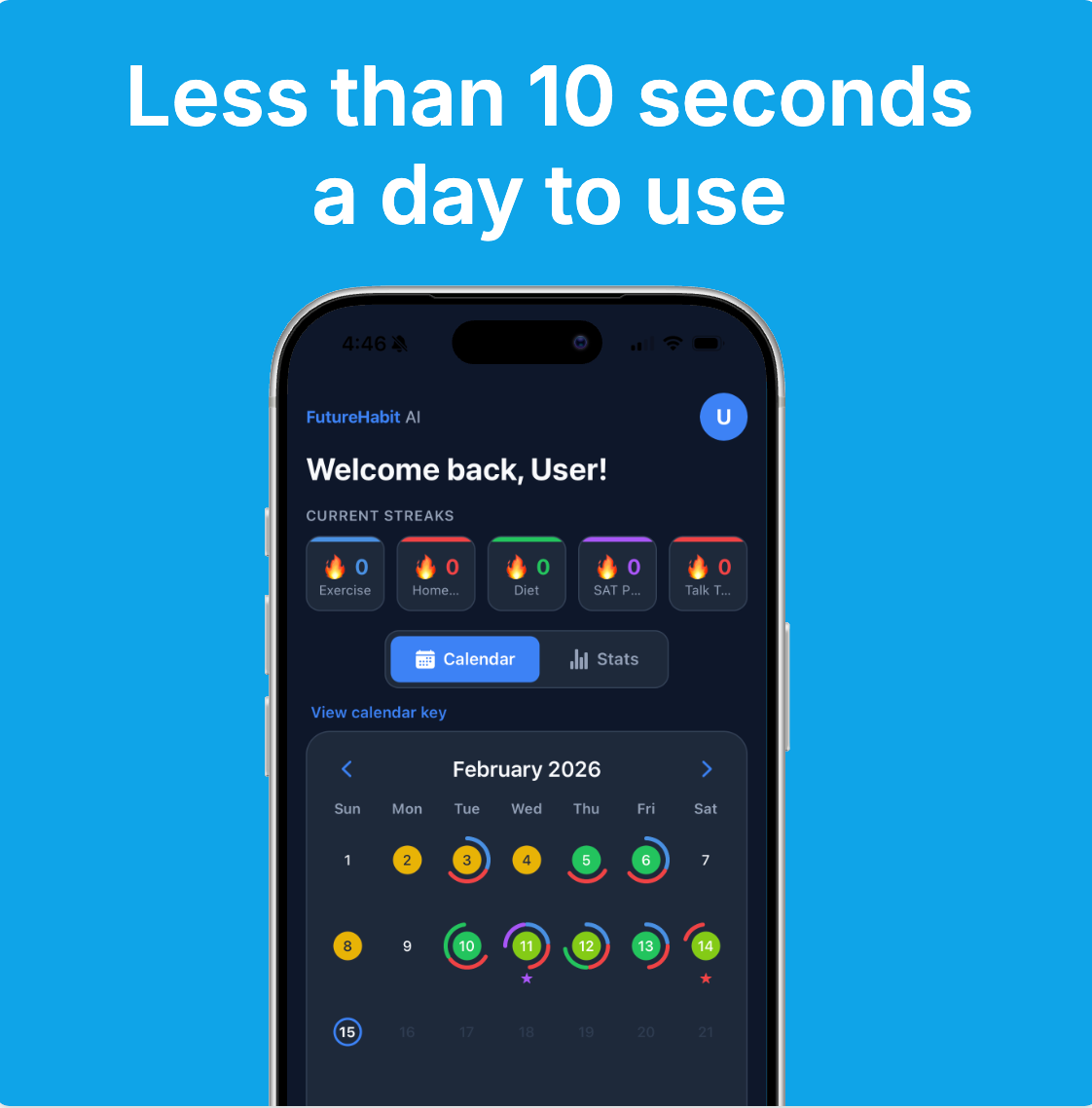 ⏱️ Rastreamento Rápido: Permite registrar o progresso diário em menos de 10 segundos, otimizando a rotina do usuário.