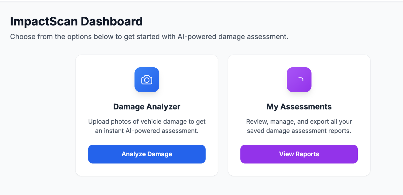 Descrição da ferramenta: ImpactScan é uma ferramenta de inteligência artificial que avalia danos em veículos por meio de fotos, fornecendo relatórios detalhados e instantâneos para facilitar processos de avaliação e reparo.