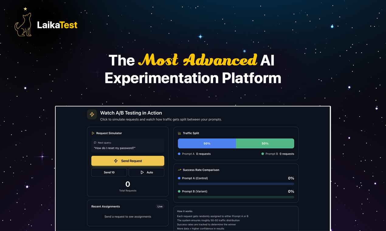 Descrição da ferramenta: LaikaTest é uma plataforma que permite realizar testes A/B em tempo real, avaliar o desempenho de IA e implementar diretrizes de segurança rapidamente, sem necessidade de infraestrutura ou configurações complexas.
