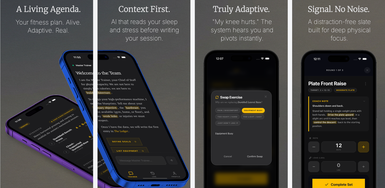 Descrição da ferramenta: O Master Trainer é uma plataforma de treinamento físico que utiliza inteligência artificial para personalizar rotinas diárias, adaptando-se às condições do usuário em tempo real, incluindo equipamentos disponíveis, fadiga e dores súbitas.