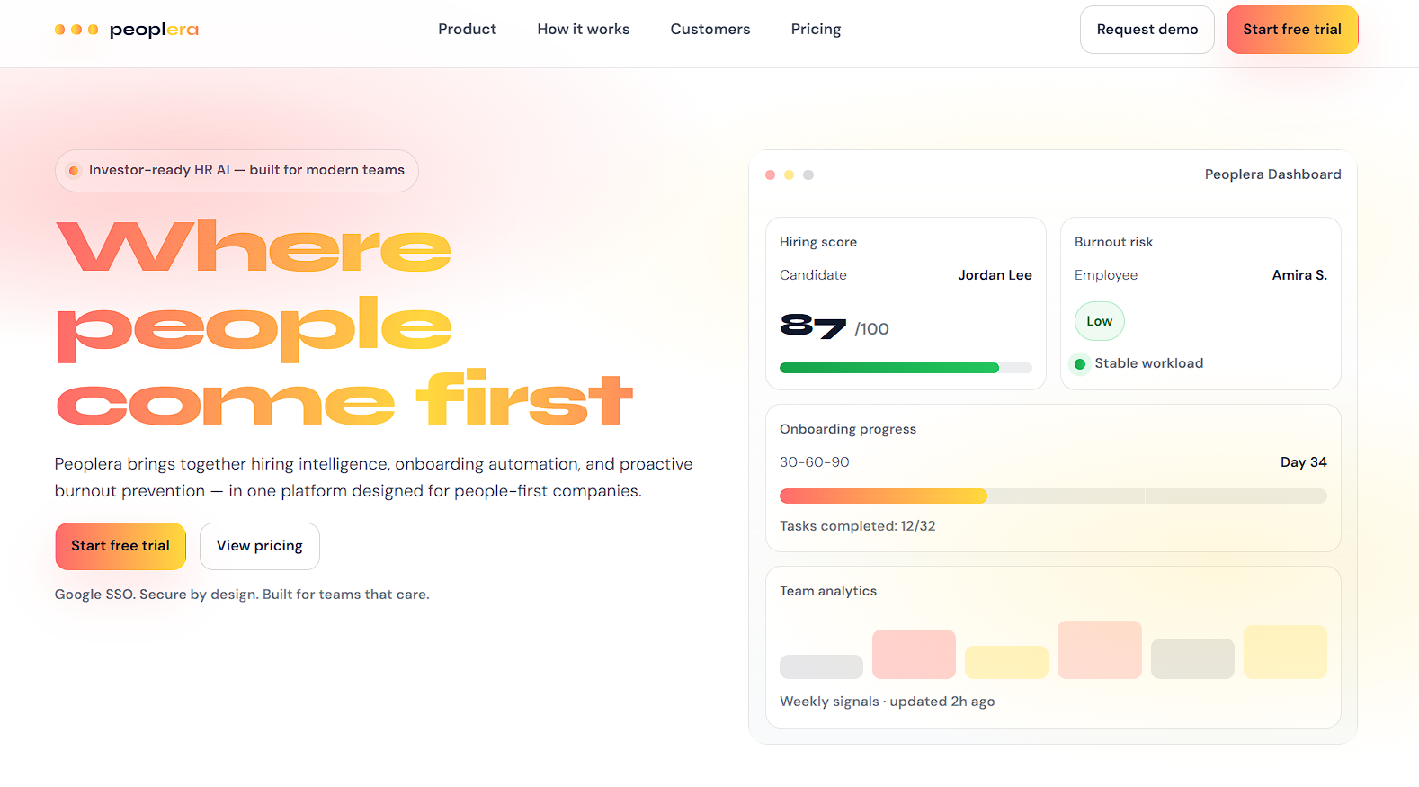Descrição da ferramenta: Peoplera é uma plataforma integrada que otimiza processos de recrutamento, onboarding e gestão de bem-estar, utilizando inteligência artificial para análises precisas e recomendações personalizadas para equipes de RH.