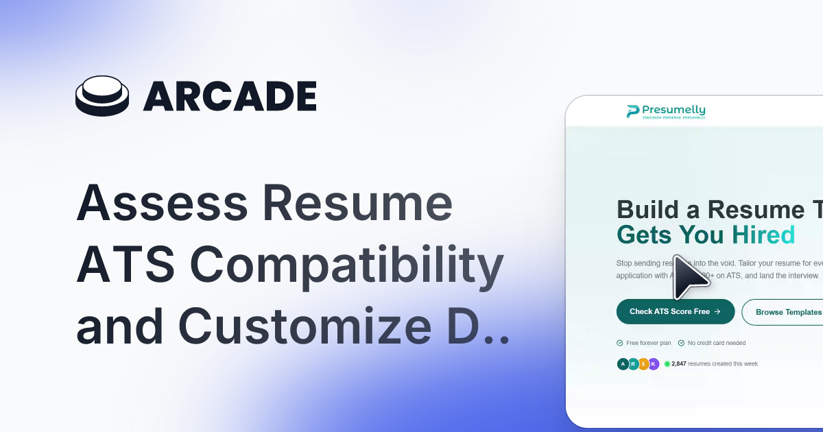 Descrição da ferramenta: Presumelly é uma plataforma que otimiza currículos para sistemas ATS, ajustando palavras-chave, reescrevendo pontos e exibindo pontuações em tempo real, aumentando as chances de destaque em processos seletivos automatizados.