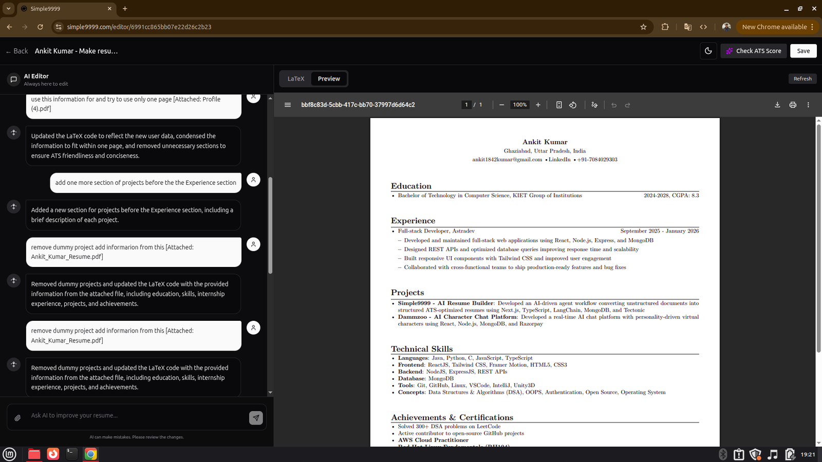 Simple9999 é uma ferramenta que auxilia na criação de currículos personalizados, facilitando a elaboração de documentos profissionais ao transformar informações fornecidas em um currículo bem estruturado.