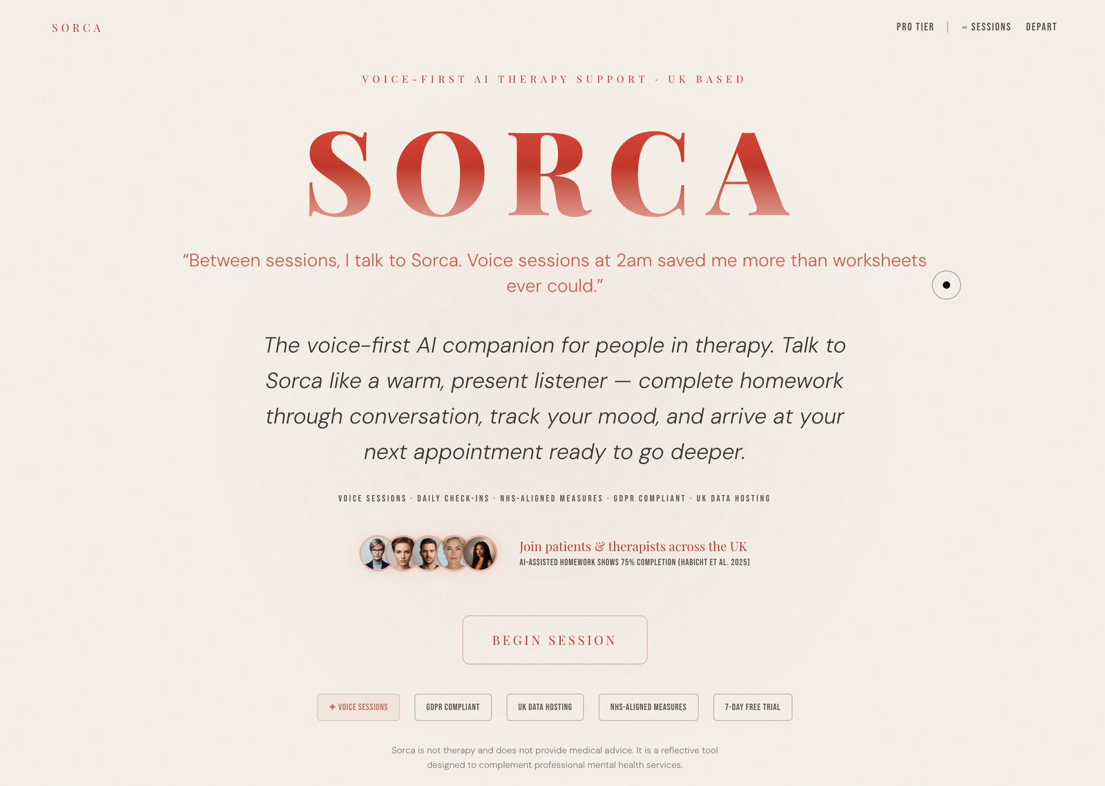 SORCA é uma assistente de IA voltada para suporte terapêutico baseado em evidências, atuando como complemento entre sessões presenciais, oferecendo apoio emocional e estratégias de enfrentamento de forma acessível e contínua.