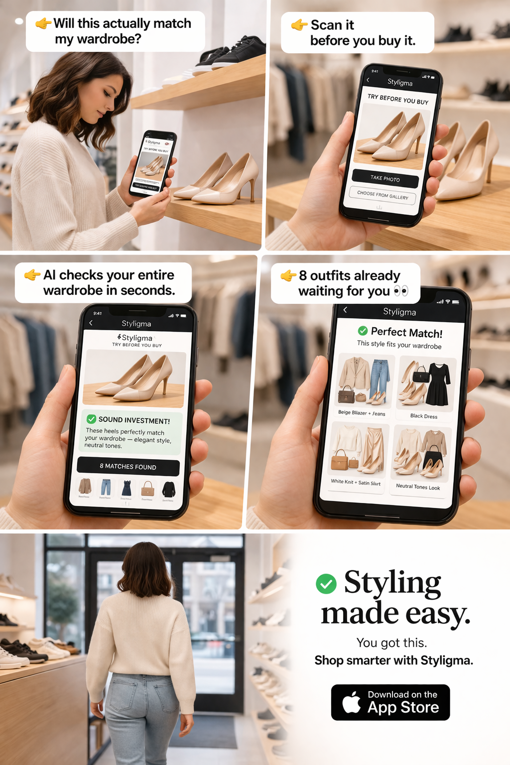 Descrição da ferramenta: Styligma é uma aplicação de inteligência artificial que auxilia na organização do guarda-roupa, oferecendo sugestões de looks, planejamento semanal e compatibilidade de roupas antes da compra, otimizando o uso das peças disponíveis.