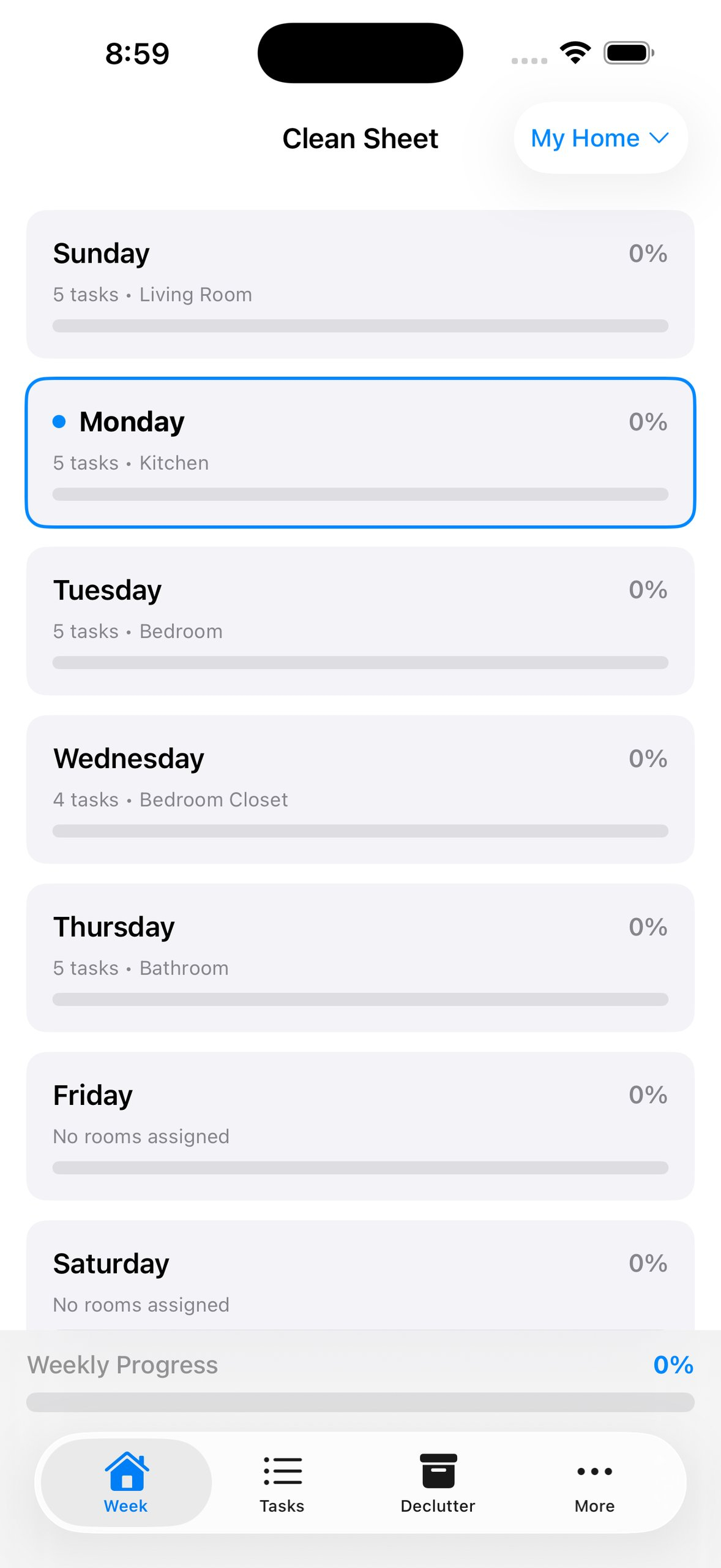 🧹 Criar rotinas semanais: Planejar tarefas recorrentes para manter a casa sempre limpa.