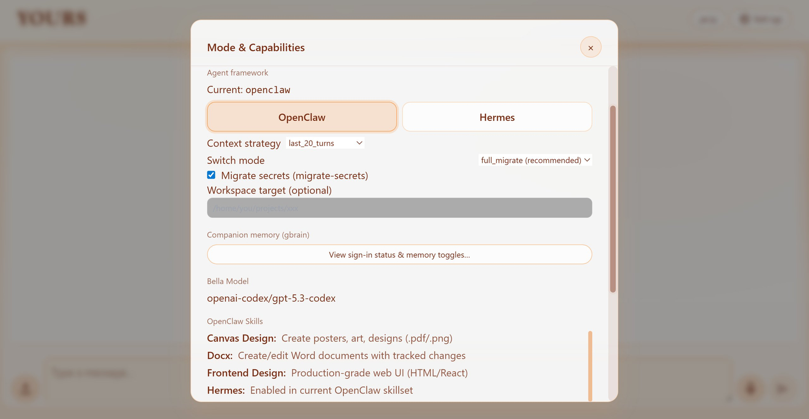 🔄 Troca Flexível de Framework: Permite alternar livremente entre os frameworks OpenClaw e Hermes durante a interação.