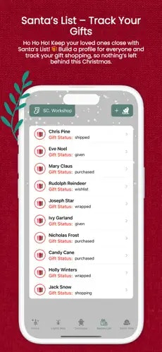 🎁 Rastreamento de presentes: Facilita o acompanhamento do status e localização dos presentes durante o período natalino.