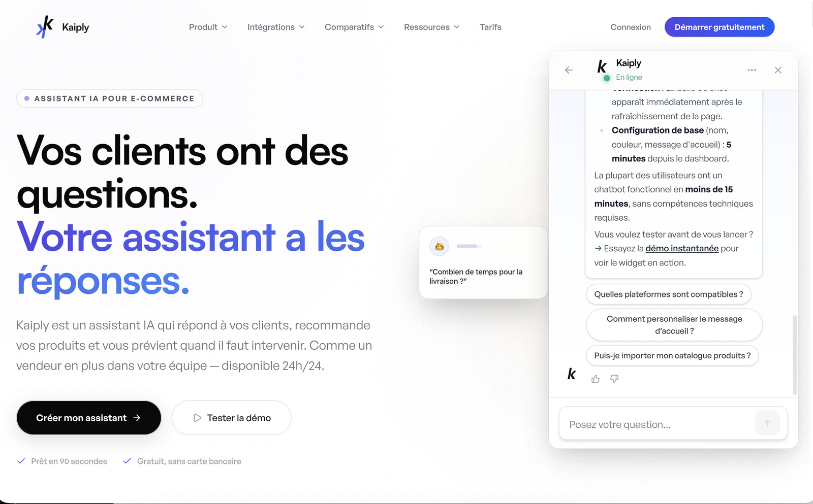 Descrição da ferramenta: Kaiply é um chatbot de inteligência artificial especializado em e-commerce, oferecendo respostas automáticas às perguntas frequentes, recomendações inteligentes e transferência para atendimento humano, com configuração rápida e plano gratuito incluso.