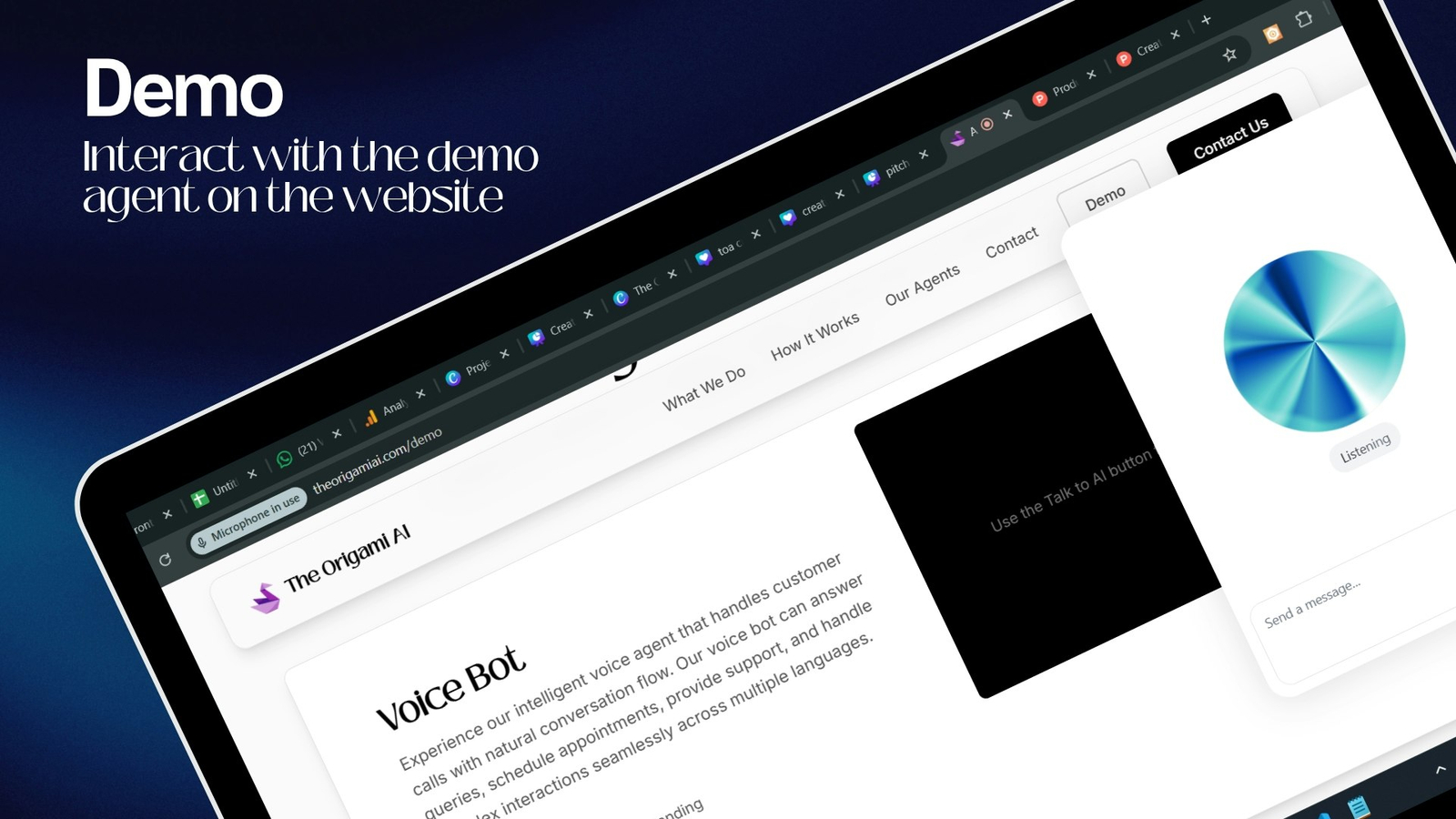 Descrição da ferramenta: The Origami AI é uma plataforma que desenvolve agentes de voz com inteligência artificial, capazes de automatizar chamadas de clientes, fornecer insights conversacionais e suportar múltiplos idiomas, aprimorando a eficiência e o atendimento ao cliente.