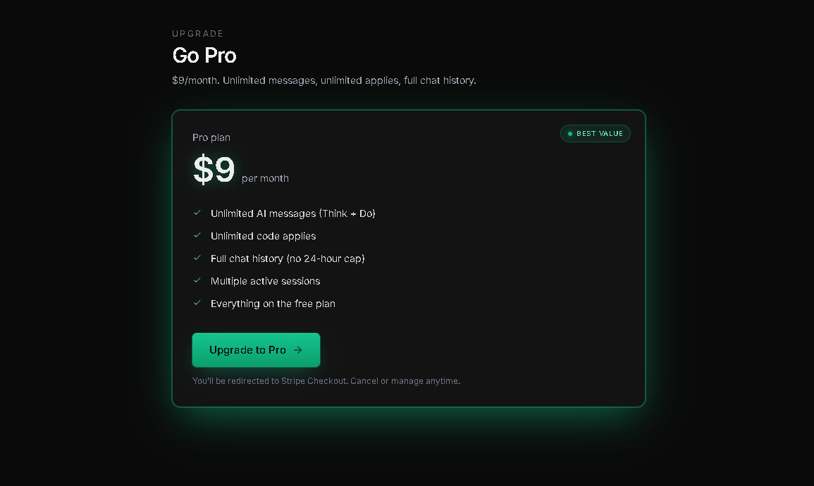 🧠 Raciocínio: Capacidade de pensar e analisar o código antes de agir, promovendo decisões mais precisas.