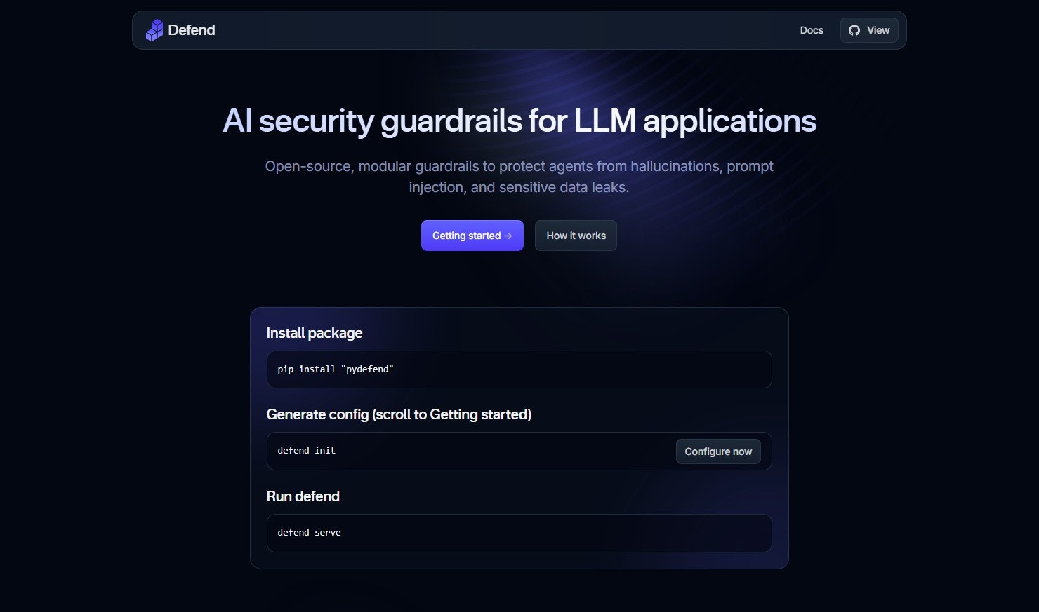 Defend é uma biblioteca de código aberto em Python que adiciona uma camada de segurança a aplicativos alimentados por modelos de linguagem, permitindo envolver o modelo com verificações configuráveis de entrada e saída com apenas uma linha de código.