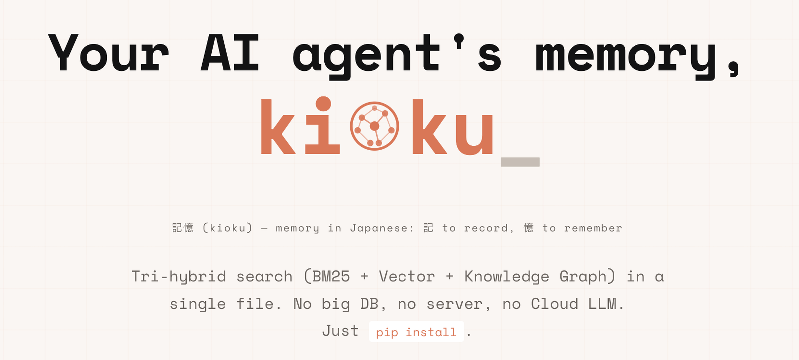 Kioku Lite é uma ferramenta que adiciona um Grafo de Conhecimento a agentes de IA, integrando buscas por palavras-chave, semântica e relacionamentos, tudo armazenado em um arquivo SQLite único, offline e de fácil instalação.