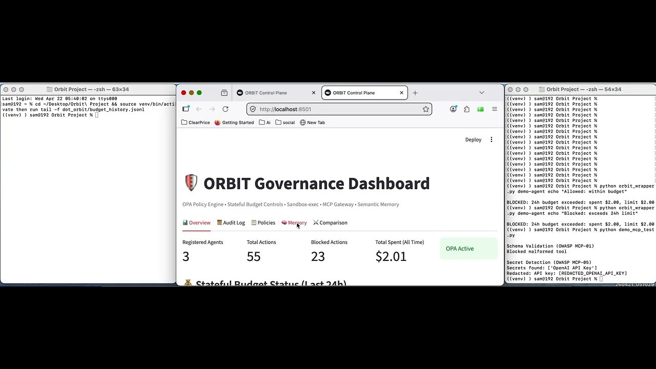 Descrição da ferramenta: Orbit é uma plataforma open-source autohospedada que gerencia agentes de IA, oferecendo limites de orçamento em tempo real, memória semântica local e conformidade com padrões de segurança OWASP MCP Top 10.