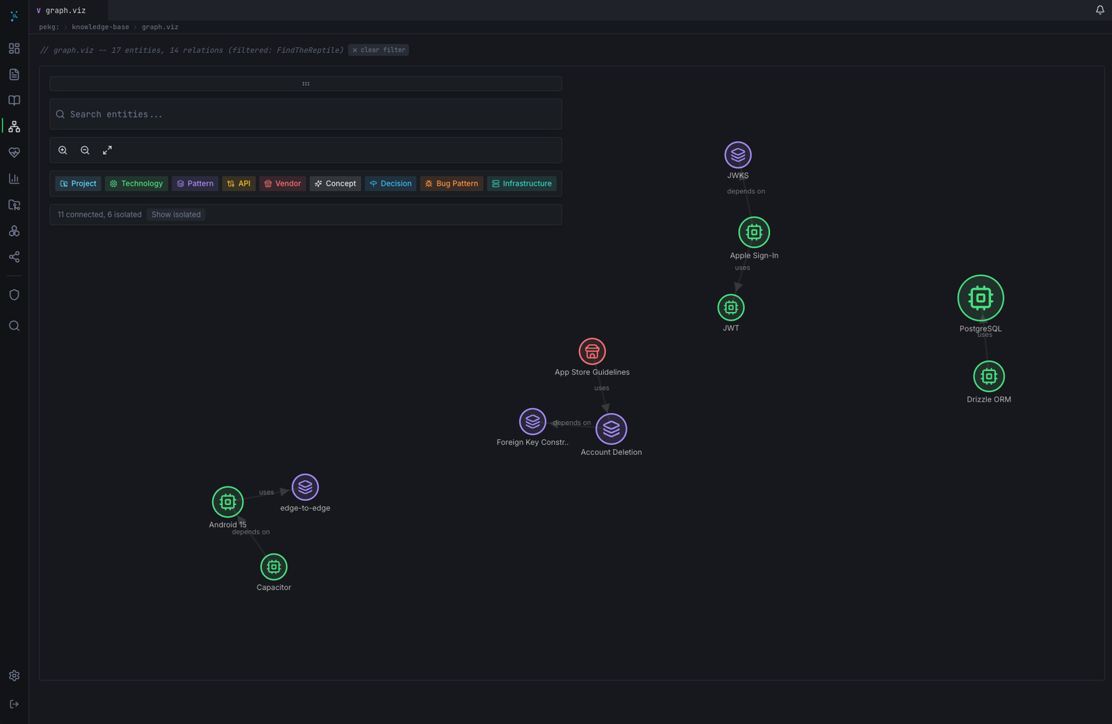 ⚙️ Análise de Padrões: Detectar tendências ou práticas comuns em múltiplos projetos através do grafo de conhecimento.