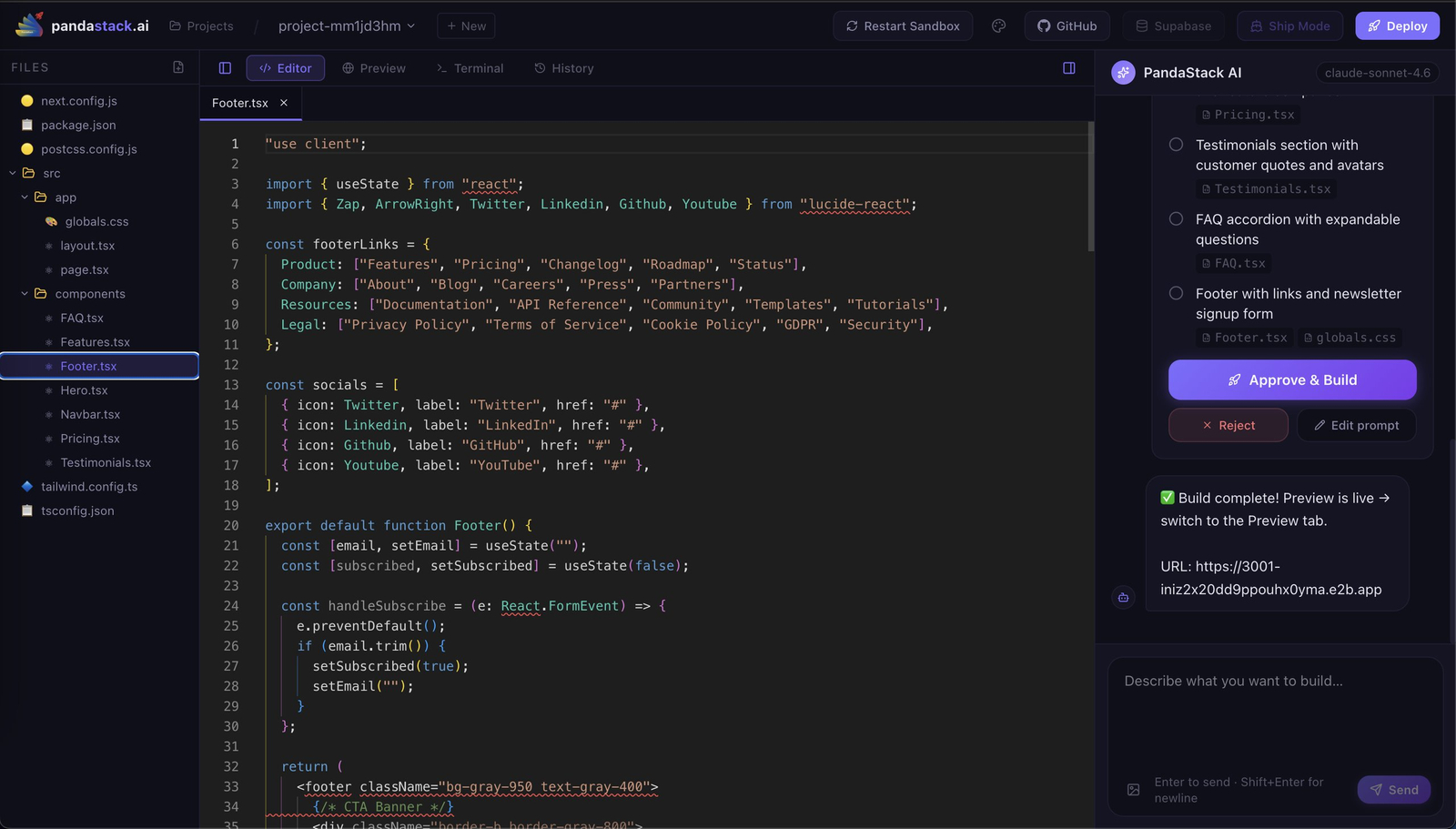 🚀 Implantação com Um Clique: Permite publicar a aplicação rapidamente com apenas um comando.