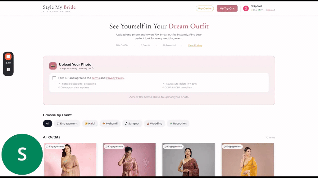 Descrição da ferramenta: Plataforma de realidade aumentada que permite experimentar virtualmente mais de 70 vestidos de noiva, incluindo lehengas, sarees e gowns, facilitando a escolha do traje ideal para casamentos indianos sem necessidade de visitas físicas às lojas.
