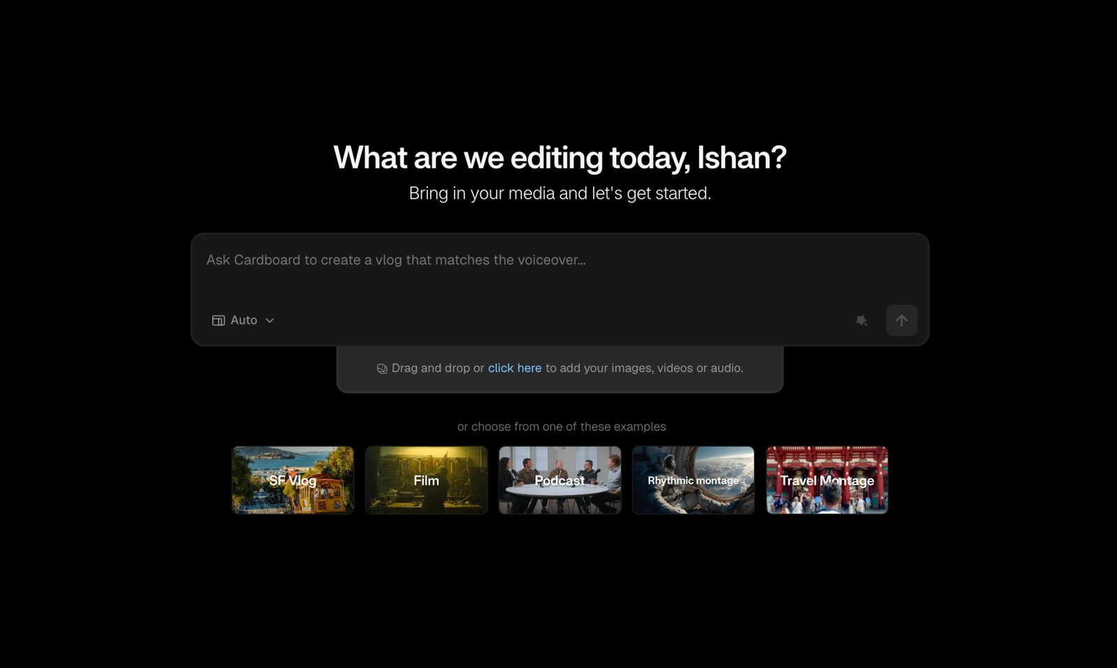 Descrição da ferramenta: Cardboard é um editor de vídeo inteligente que transforma imagens brutas em cortes finais rapidamente, atuando como colaborador que compreende o conteúdo, possui bom gosto e executa a visão do usuário de forma eficiente.