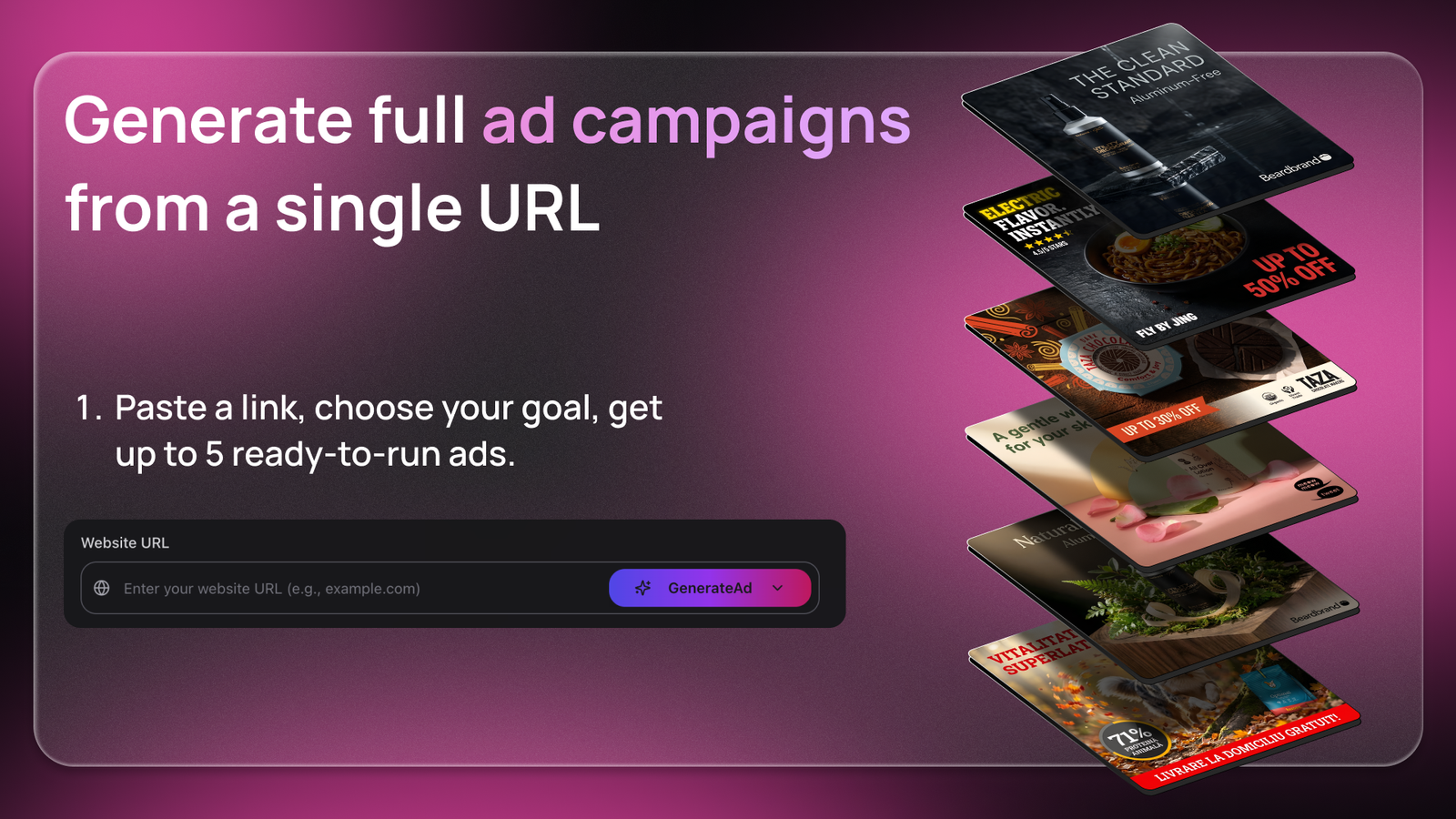 📈 Criar campanhas completas a partir de um link: Gera múltiplos anúncios otimizados para diferentes públicos e formatos.