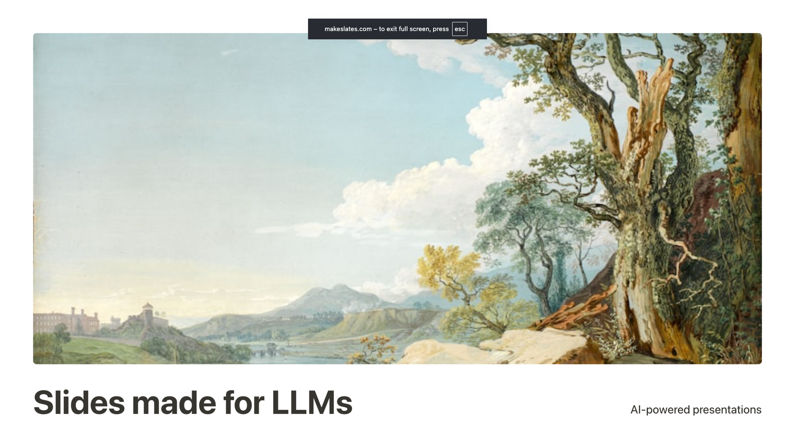 Descrição da ferramenta: Slates é uma plataforma de criação de apresentações para modelos de linguagem, utilizando estrutura JSON e layouts em grade, permitindo que agentes automatizem a geração de slides com facilidade e flexibilidade.