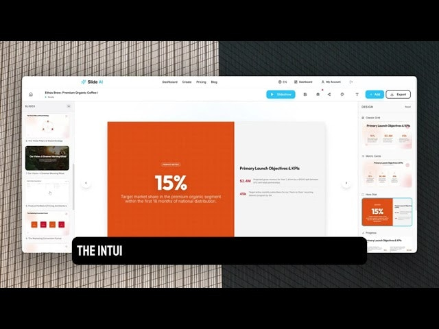 Descrição da ferramenta: SLIDEAI converte notas, PDFs ou documentos Word em apresentações profissionais e prontas para clientes, otimizando o tempo de freelancers e consultores na criação de decks visuais de alta qualidade.