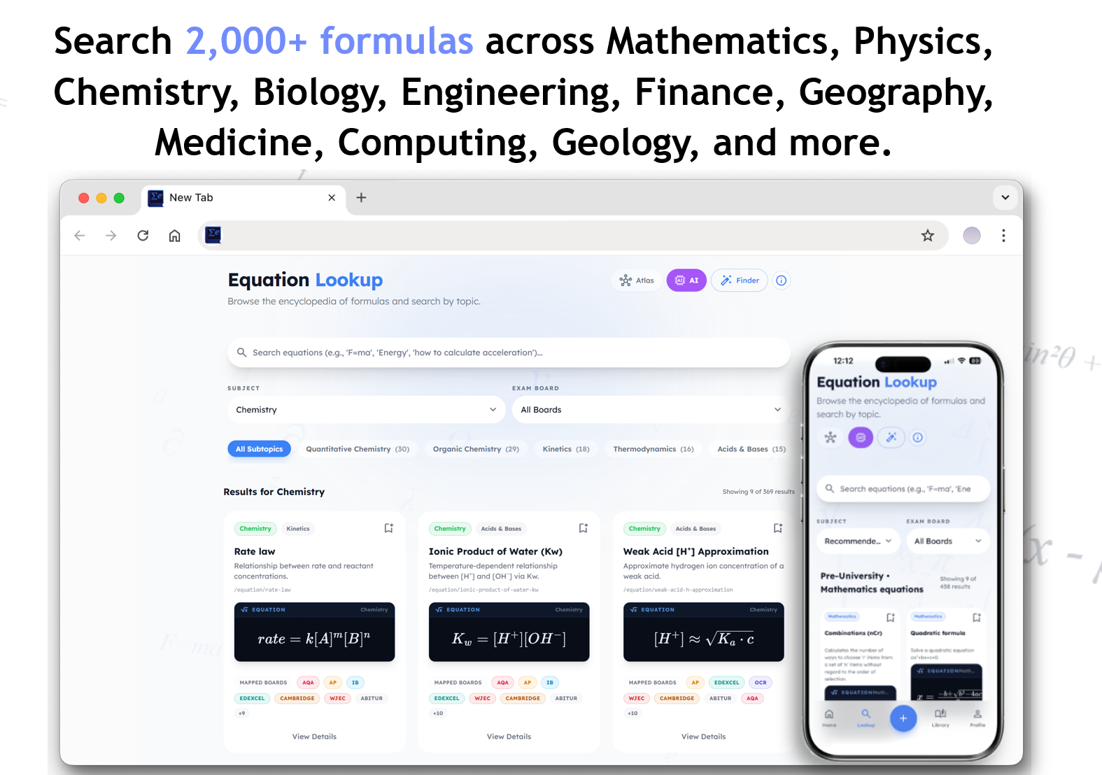 Descrição da ferramenta: A Equation Encyclopedia é uma plataforma que oferece acesso a mais de 2.000 fórmulas de Matemática, Física, Química, Biologia e Engenharia, com recursos interativos e inteligência artificial para aprimorar o aprendizado dos estudantes.