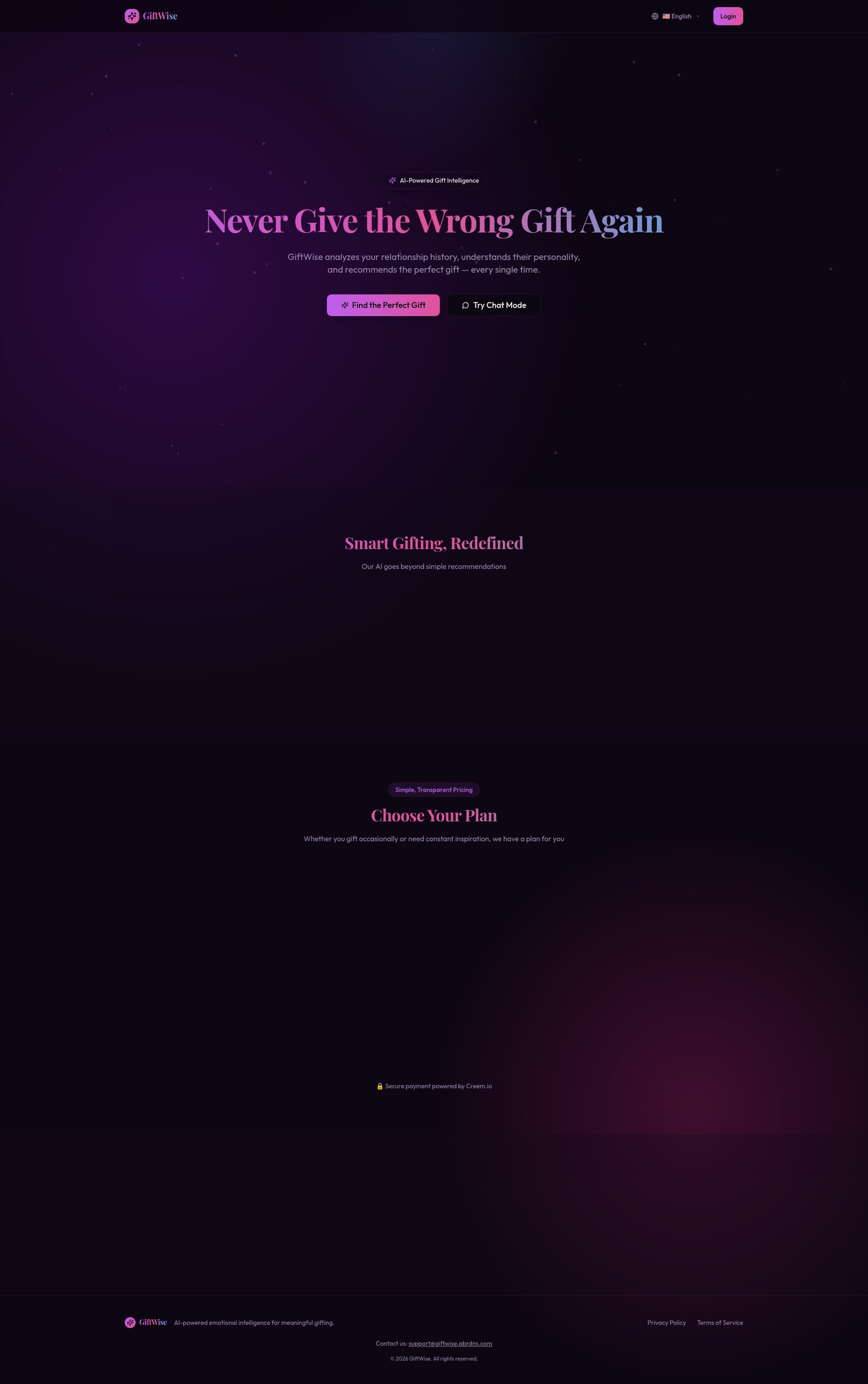 Descrição da ferramenta: GiftWise AI é uma plataforma de consultoria de presentes que utiliza inteligência artificial para oferecer sugestões personalizadas, considerando emoções, etiqueta, personalidade e contexto cultural, garantindo escolhas significativas e com alma.