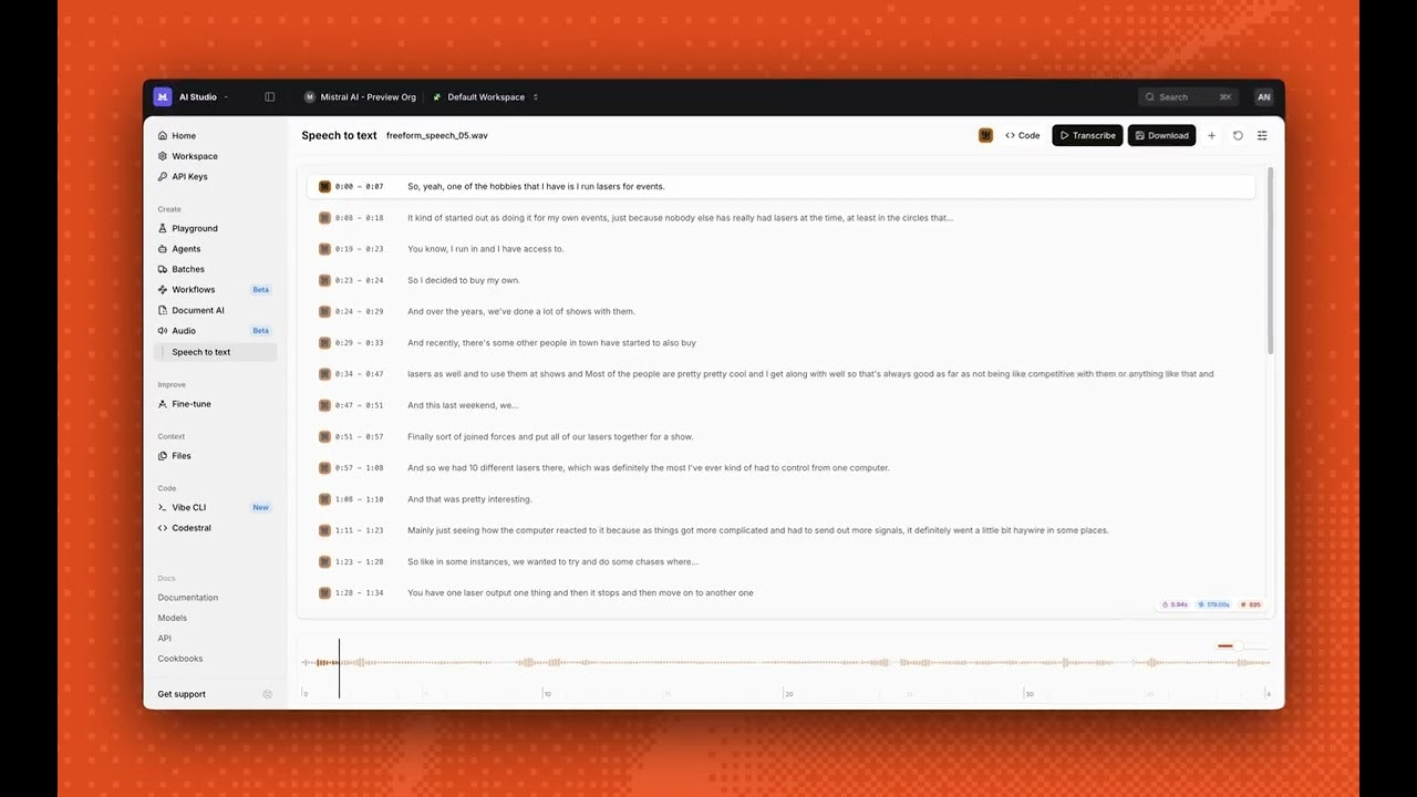 Descrição da ferramenta: Voxtral Transcribe 2 by Mistral é uma solução de transcrição de fala em tempo real, com alta precisão, suporte a múltiplos idiomas e diarização de falantes, ideal para aplicativos ao vivo, agentes de voz e reuniões.