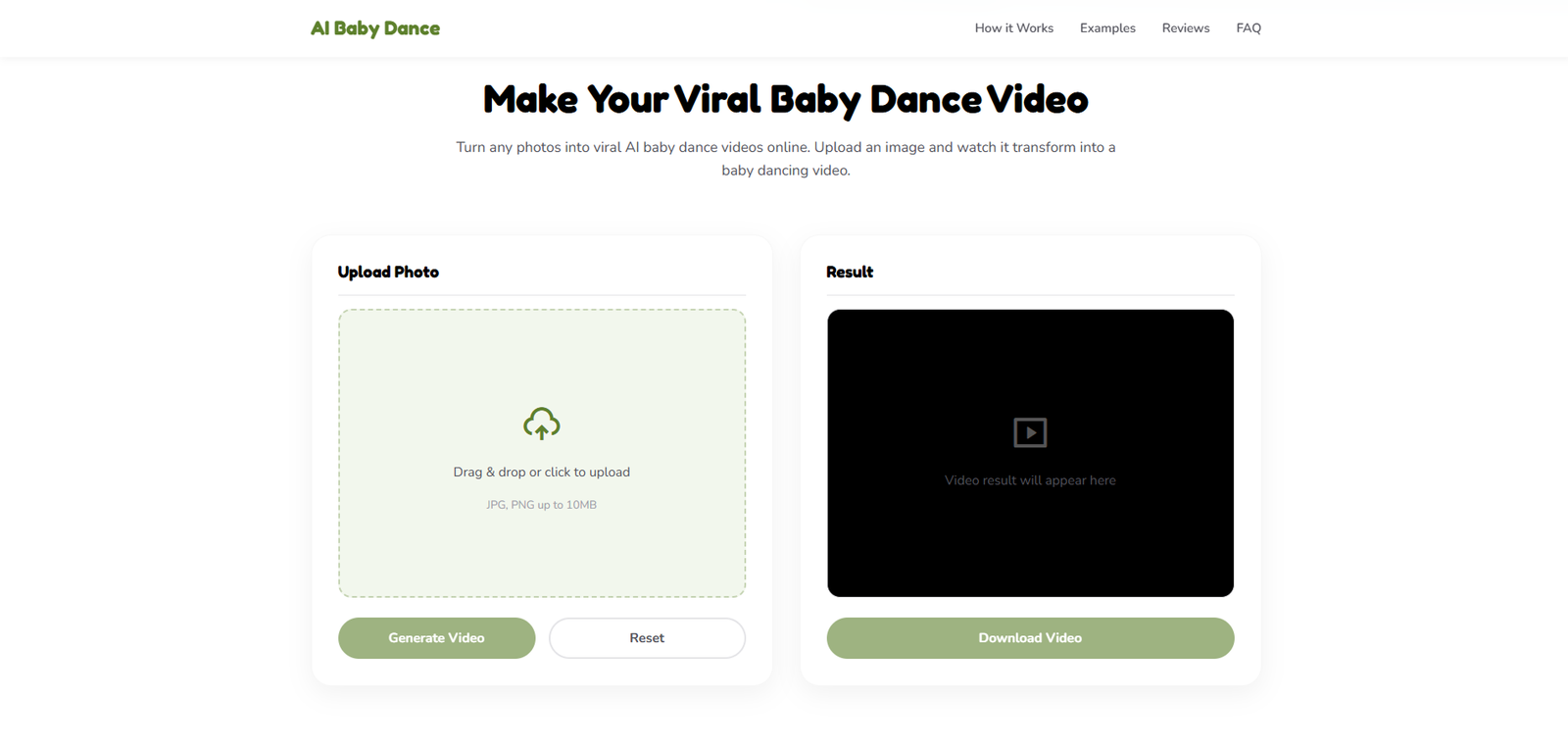 Descrição da ferramenta: AI Baby Dance é uma ferramenta que converte fotos em vídeos de bebês dançando, utilizando inteligência artificial para criar movimentos naturais e virais, ideal para compartilhamento online.
