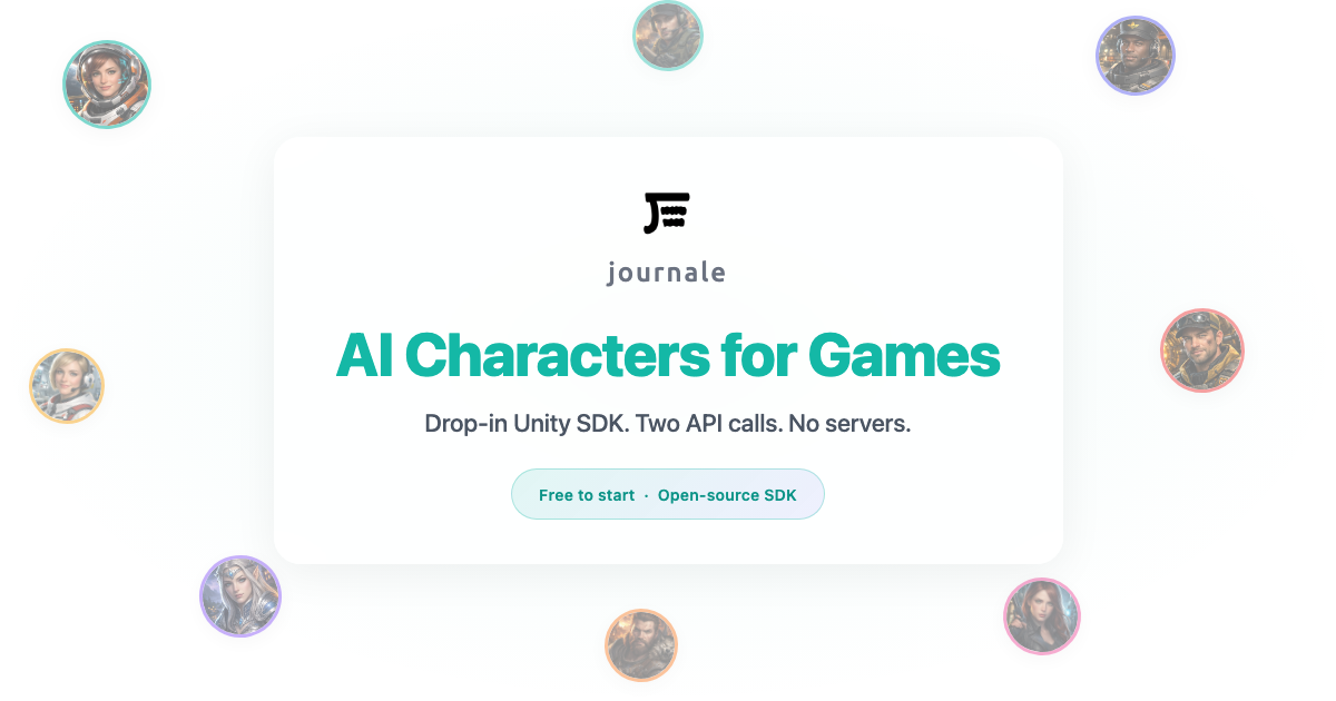 Descrição da ferramenta: Journale é uma plataforma que permite integrar personagens de inteligência artificial em jogos Unity, facilitando diálogos rápidos e gerenciáveis, com suporte a autenticação de jogadores e moderação de conteúdo, seja via SDK sem servidor ou API backend.