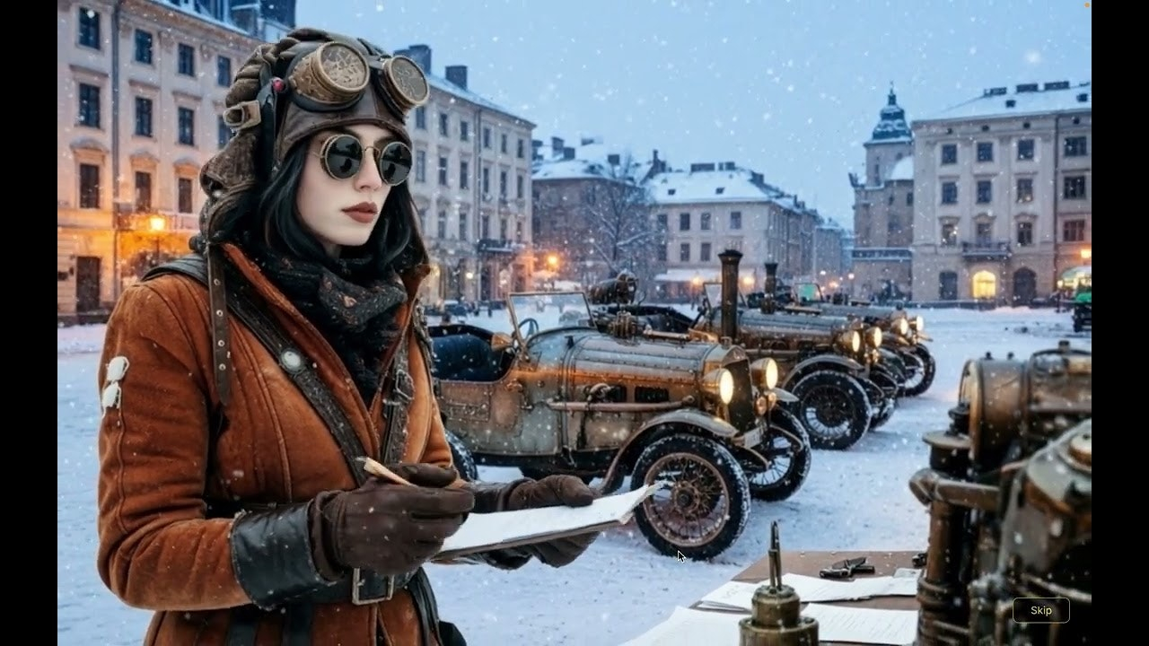 🛠️ Ambientação Steampunk: Cenário detalhado inspirado no estilo steampunk de inverno.