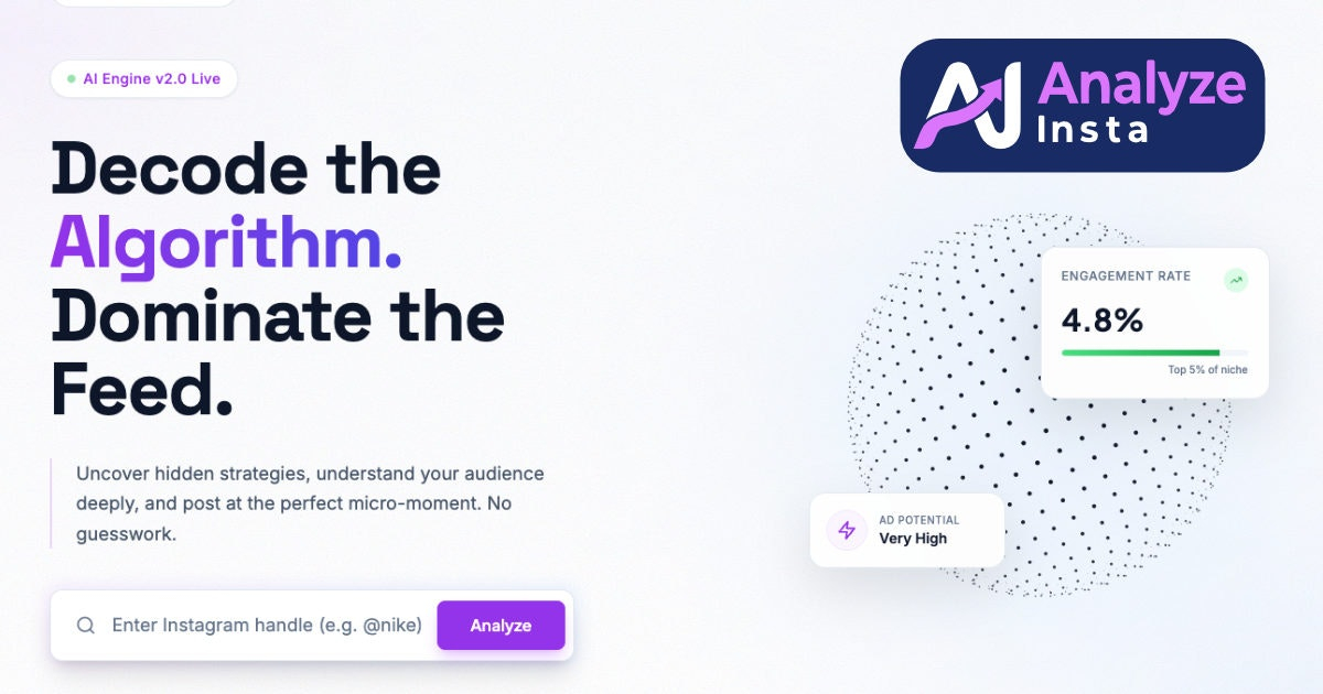 Descrição da ferramenta: Analyze Insta é uma plataforma que utiliza inteligência artificial para analisar o público do Instagram, oferecendo dados demográficos detalhados, estratégias de conteúdo e sugestões de anúncios para impulsionar o crescimento nas redes sociais.