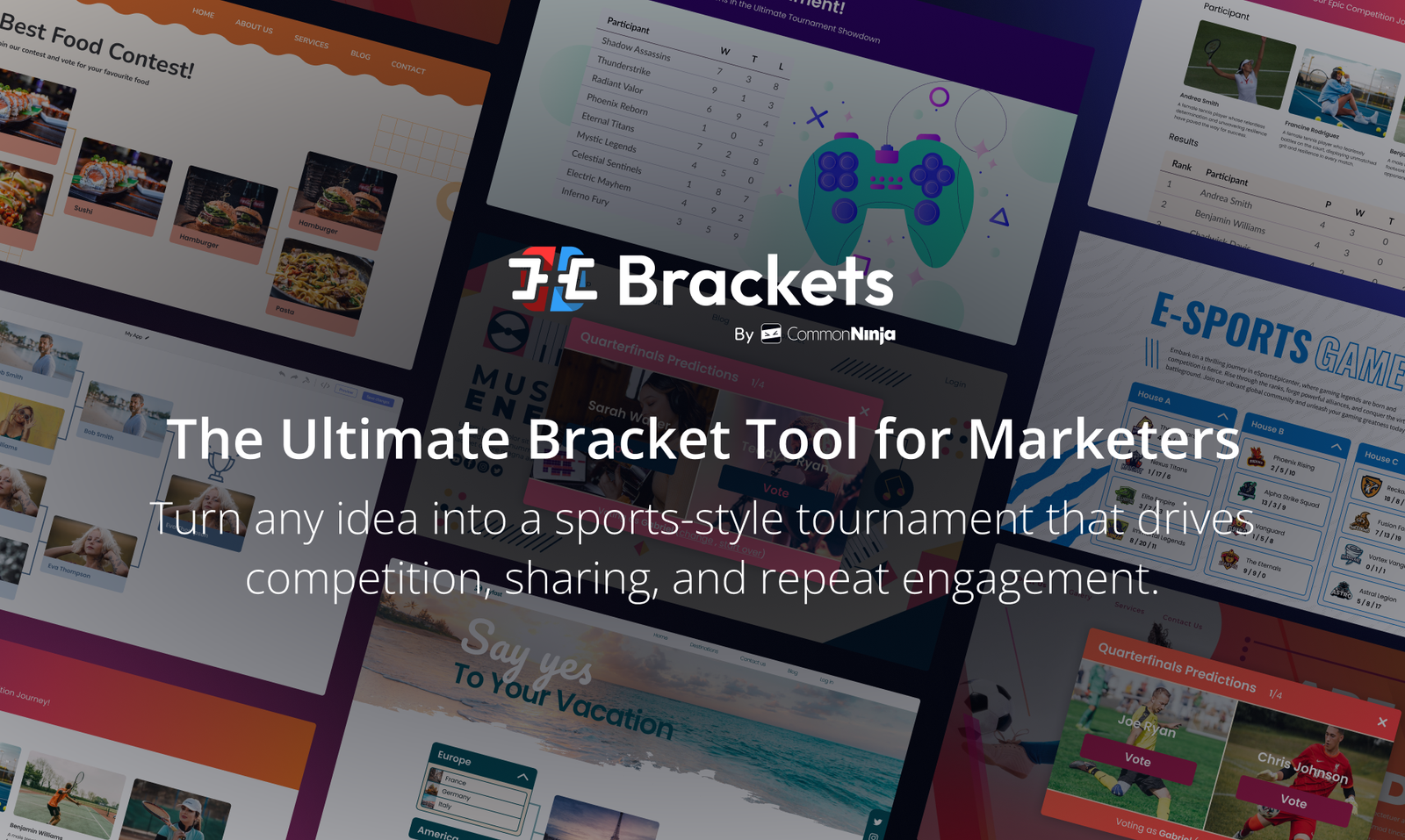 Descrição da ferramenta: Brackets by Common Ninja é uma ferramenta que permite criar torneios interativos de estilo esportivo, promovendo votação, compartilhamento e engajamento contínuo do público por meio de templates personalizáveis e recursos de inteligência artificial.