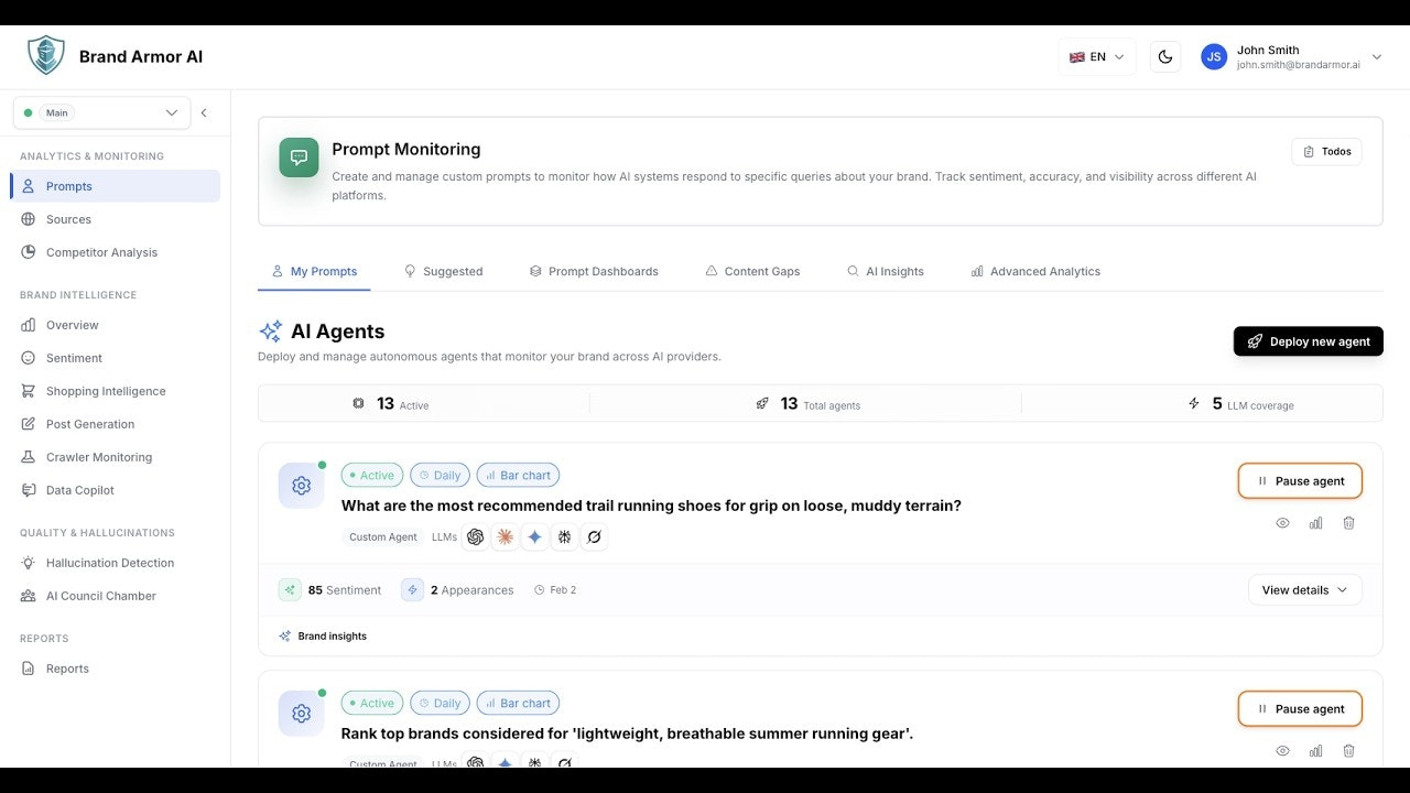 ⚠️ Sinalização de Inverdades na Marca: Detectar informações incorretas ou hallucinações relacionadas à marca em plataformas AI.