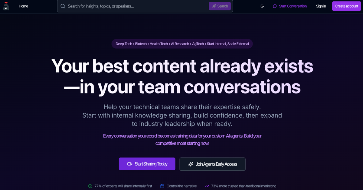 O Momento é uma plataforma que captura, transforma e torna pesquisáveis conversas gravadas em Zoom ou Teams, facilitando a criação de conteúdo e o crescimento de audiência a partir de interações corporativas.