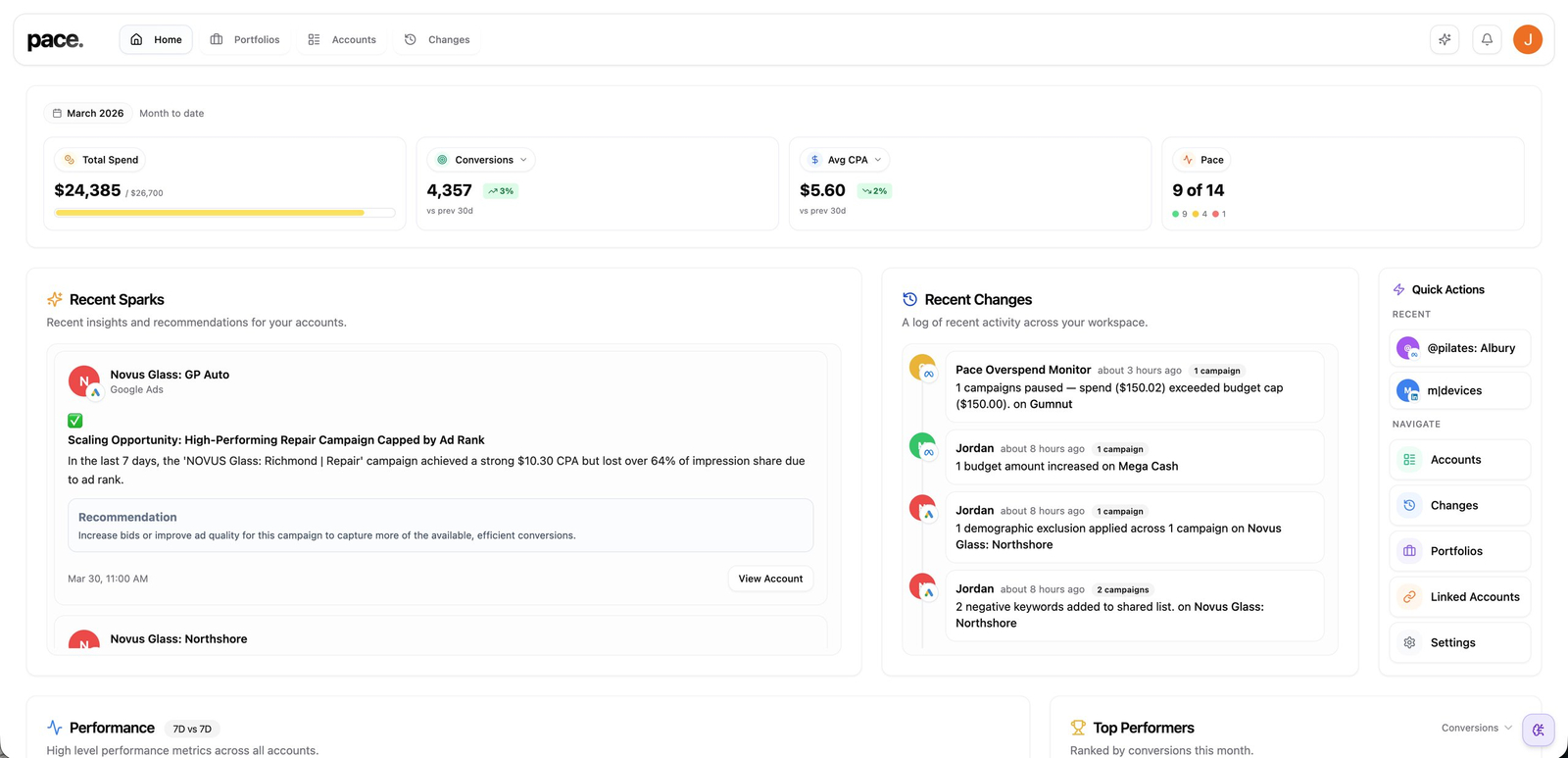 Descrição da ferramenta: Pace Ads é uma plataforma de gerenciamento de anúncios omniplataforma que otimiza campanhas em Google, Meta, LinkedIn e Microsoft Ads, utilizando inteligência artificial para reallocar investimentos, detectar anomalias e analisar resultados de forma integrada.