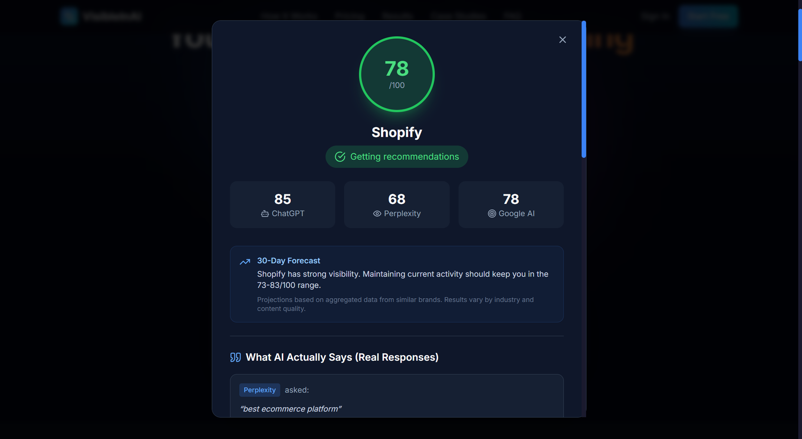 VisibleInAI é uma plataforma que analisa a presença de marcas em respostas de IA, oferecendo estratégias para melhorar sua visibilidade e posicionamento em ChatGPT, Perplexity e Google AI.